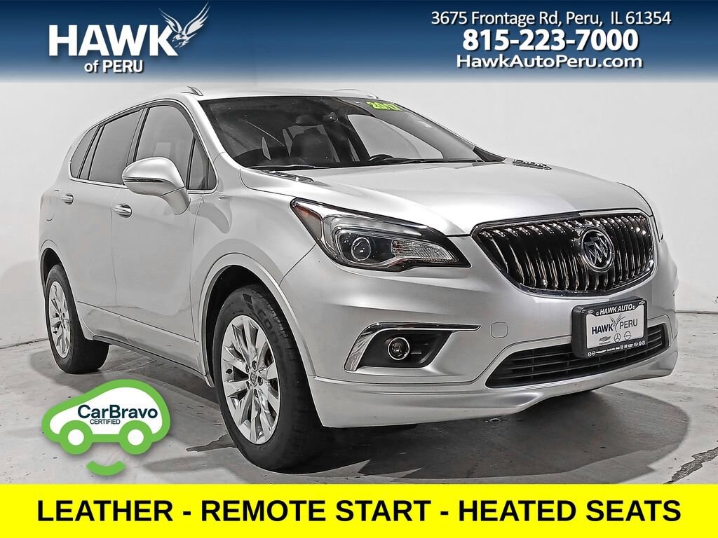 2017 Buick Envision EssenceGalaxy Silver Metallic 2.5L 4-Cylinder DGI DOHC VVT FWDOdometer is 7716 miles below market average!*HEATED POWER LEATHER SEATS*REMOTE START*BACKUP CAMERA*POWER REAR LIFTGATE*KEYLESS ENTRY*ALLOY WHEELS*30MPG!!!Come see this 2017 Buick Envision Essence! It's the one you've been longing for! This Envision comes equipped with these options:Apple CarPlay/Android Auto, Auto-dimming door mirrors, Auto-dimming Rear-View mirror, Automatic temperature control, Exterior Parking Camera Rear, Front dual zone A/C, Front fog lights, Fully automatic headlights, Heated Driver & Front Passenger Seats, Heated rear seats, Heated steering wheel, Power driver seat, Power Liftgate, Preferred Equipment Group 1SL, Rear Parking Sensors.Recent Arrival! 22/29 City/Highway MPGAwards:* 2017 IIHS Top Safety Pick+ with optional front crash prevention and specific headlights * 2017 IIHS Top Safety Pick+ with optional front crash prevention * 2017 KBB.com Brand Image AwardsReviews:* Manageable size makes it easy to drive and maneuver; the cabin is as quiet inside as premium luxury SUVs; you get a lot of features for the money. Source: EdmundsLooking for an affordable, reliable, new or used vehicle? If you've been looking at dealerships in Spring Valley, Jonesville, Oglesby, North Utica, or Cedar Point, and not finding what you want, give us a try. We have a great selection of new, used, and Certified pre-owned cars and trucks on our lot, and we're sure there's one that will suit your needs. Whether it's a commuter car, family vehicle, or truck you're looking for, you'll find it here. And all of our used vehicles are inspected for quality and safety, so you can drive away with confidence.